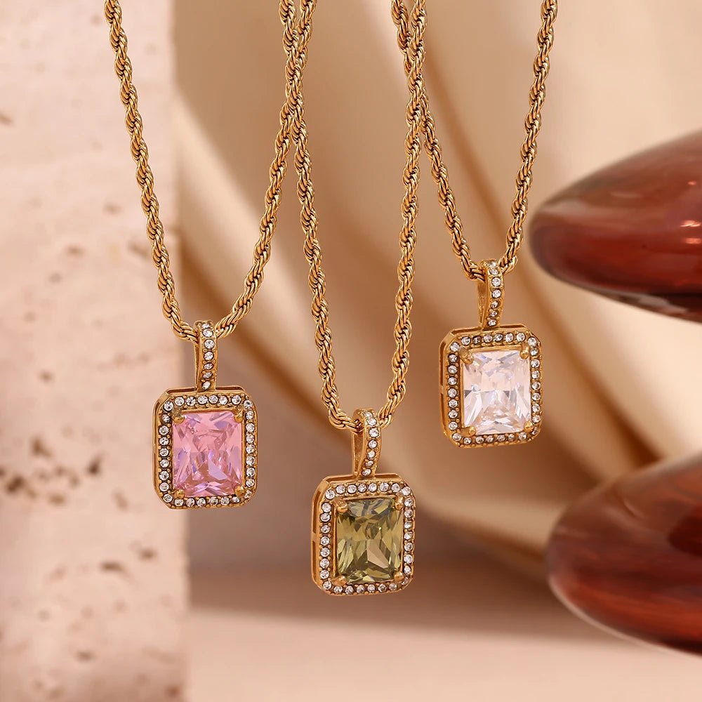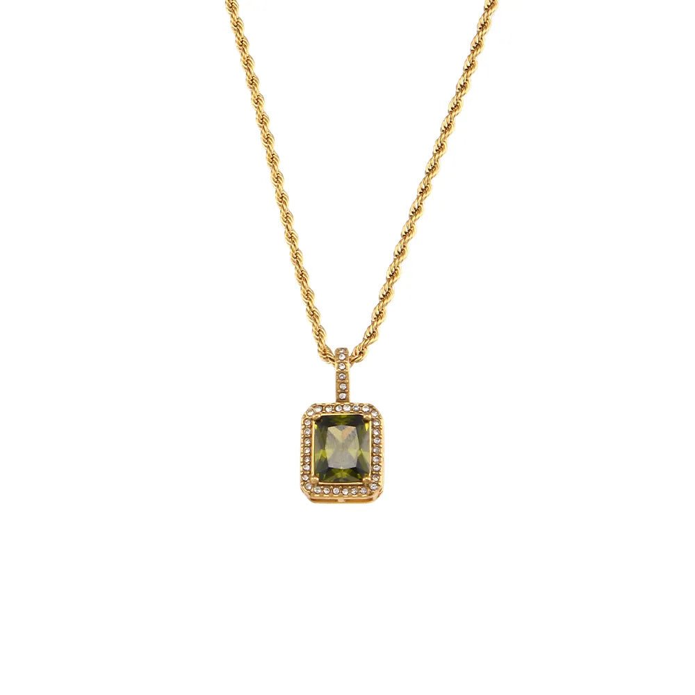 Rope Chain Square Stone Pendant Necklace